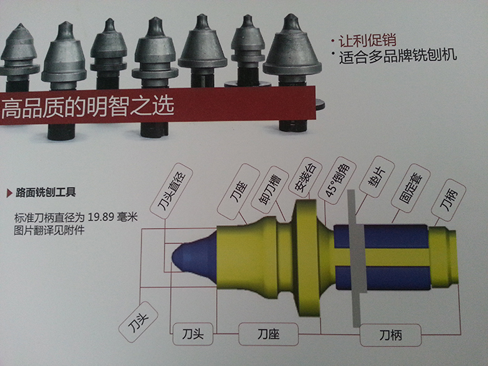 銑刨機(jī)刀頭的刀柄上下部分有著不同的力學(xué)性能,上半部要與路面和銑刨廢料產(chǎn)生磨擦,所以需要很高的硬度,下半部的桿插入刀座內(nèi),需要能吸收銑刨過程中的沖擊,所以韌性好。這樣刀柄就需要具有雙重性能:耐磨且抗折。中間存在一個(gè)退刀槽,可以利用卸刀鉗將刀頭從刀座中拔出(有的刀頭沒有退刀槽,使用刀頭沖桿將其從后部沖出)。一些新型的刀頭,刀柄頭部還布有凹槽,增加了與地面摩擦過程中的旋轉(zhuǎn)性能,防止偏磨。
